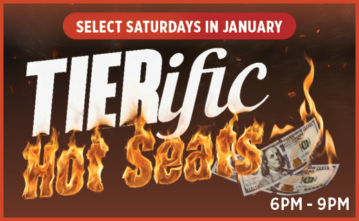 PROMOTIONS Play & Earn Fridays | 4:00 PM - 9:00 PM Learn More Girls Night Out Tuesdays | 11:00 AM - 9:59 PM Learn More Club 50 Mondays & Thursdays | 11:00 AM - 9:59 PM Learn More Guys Night Out Wednesdays | 11:00 AM - 9:59 PM Learn More TIERific Hot Seats Saturdays | 6:00 PM - 9:00 PM Learn More Refer a Friend Once Weekly | 11 AM - Close Learn More Birthday Month Rewards Redeem any day during your birthday month | Learn More Midnight Countdown Giveaway December 31st | 6:00 PM - 12:30 AM Learn More